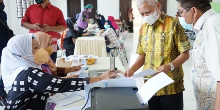 TASLABNEWS, ASAHAN-Sebanyak 300 orang guru Paud, TK, SD dan SMP mengikuti vaksinasi covid-19, Kamis (22/07/2021).