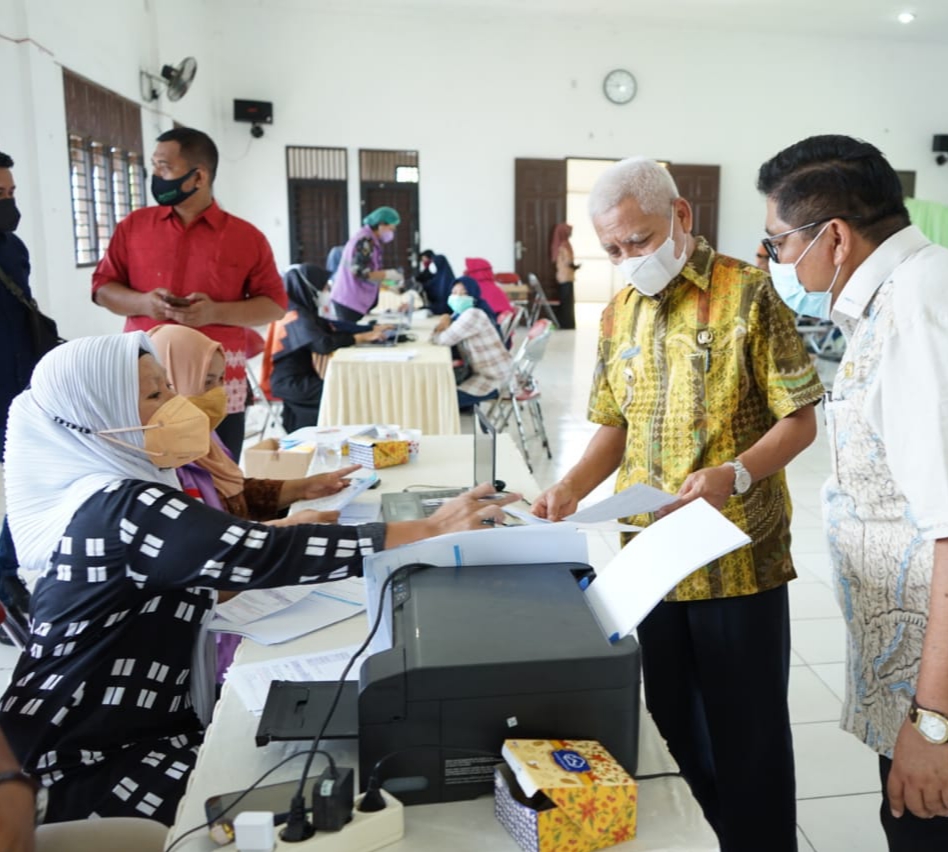 Disela-sela peninjauannya Bupati Asahan H. Surya, BSc mengatakan kepada petugas vaksinasi agar memberikan pelayanan terbaik kepada tenaga pendidik yang mengikuti vaksinasi covid-19.