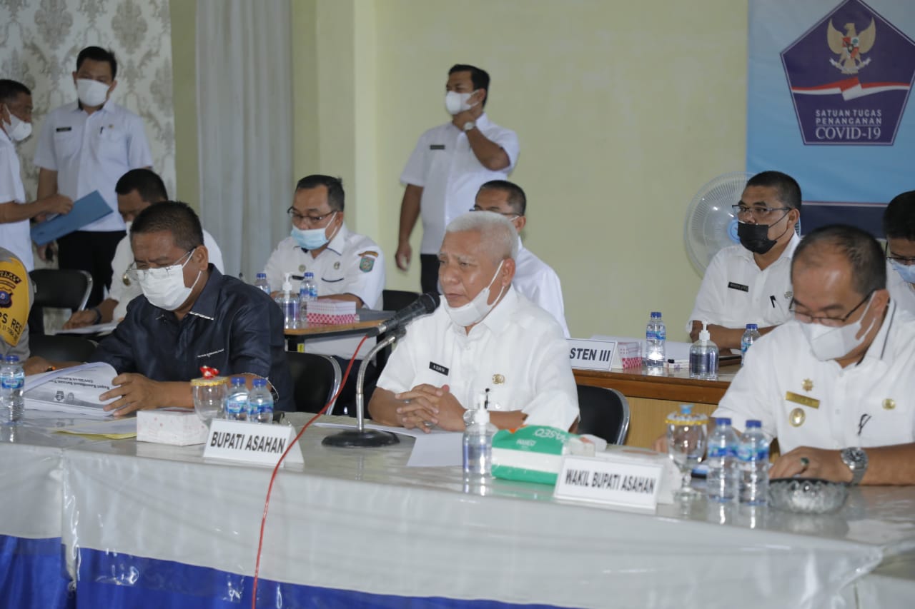 TASLABNEWS, ASAHAN-Ketua Satuan Tugas Percepatan Penanganan Covid-19 Kabupaten Asahan H Surya BSc memimpin rapat tindak lanjut tentang Pelaksanaan Pembatasan Kegiatan Masyarakat (PPKM) berbasis mikro dalam rangka pengendalian penyebaran Covid-19 di Kabupaten Asahan.