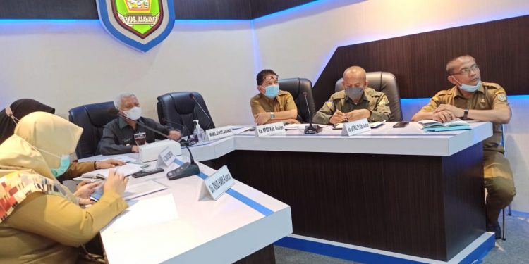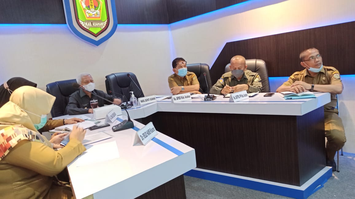 Pemerintah Kabupaten Asahan yang mengikuti zoom meeting di Comment Center Kantor Bupati Asahan Bupati Asahan, Kepala BPBD Kabupaten Asahan, Kasatpol PP Kabupaten Asahan, Kepala Dinas Sosial Kabupaten Asahan dan Kepala Dinas Kesehatan Kabupaten Asahan. (Ril/Syaf)