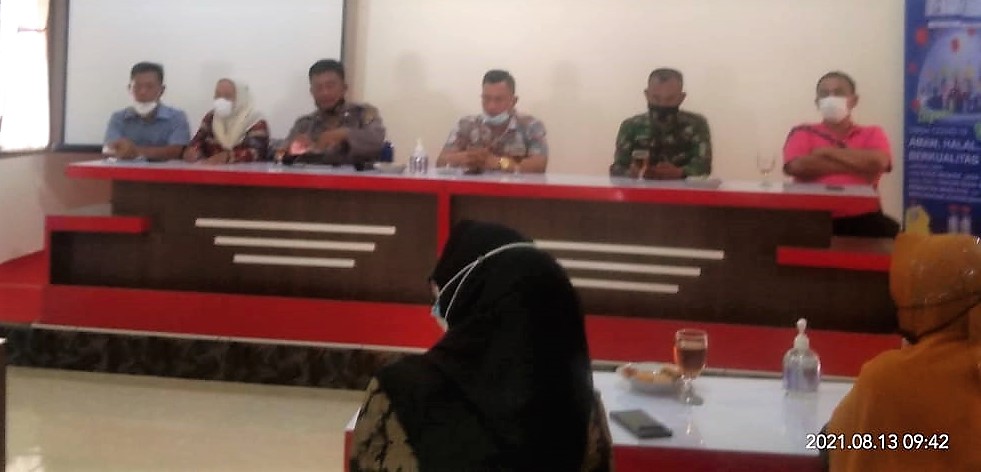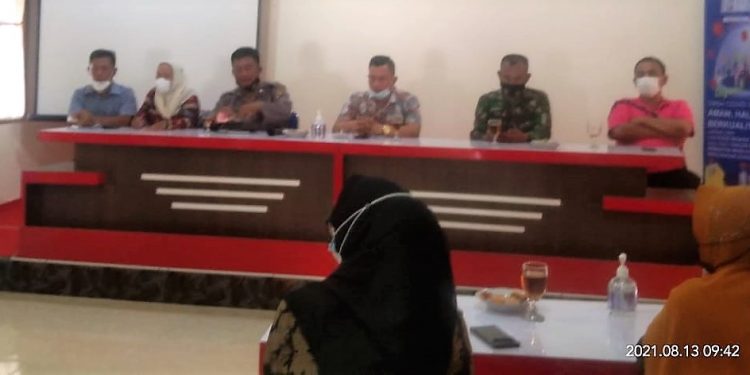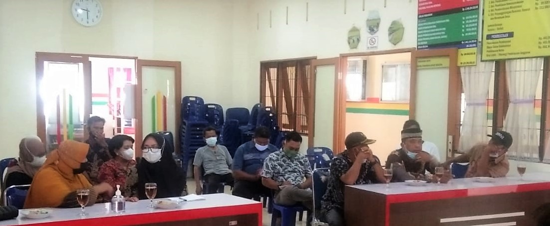 Rapat koordinasi yang dihadiri seluruh Forkopincam Rawang Panca Arga dan tokoh masyarakat tersebut dilangsungkan dengan menerapkan protokol kesehatan penanganan Covid-19. (edi/mom)