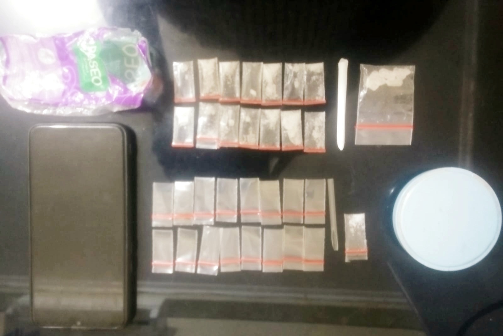 “Pada saat dilakukan penangkapan, tepat didepan tersangka diatas meja makan, ditemukan kotak bedak berisi satu bungkusan yang berisi 16 bungkus plastik klip transparan yang kosong,” tambahnya.