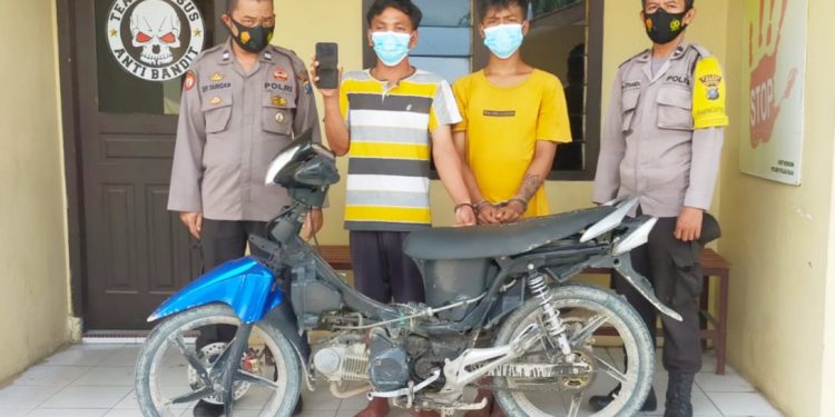 Diinformasikan Kapolsek Pulau Raja, barang bukti sudah diamankan, satu unit Sepeda Motor Honda Supra X 125 warna hitam Nopol BK 5833 XQ dan satu unit Handphone merk OPPO F9 Warna ungu. (Sof/mom)