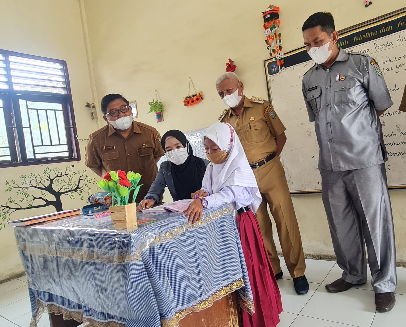 “Kita meninjau pelaksanaan belajar tatap muka terbatas pada hari ini, untuk memastikan Pelaksanaan PTM berjalan dengan baik dan tetap memperhatikan Protokol Kesehatan secara ketat ” kata H. Surya,