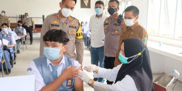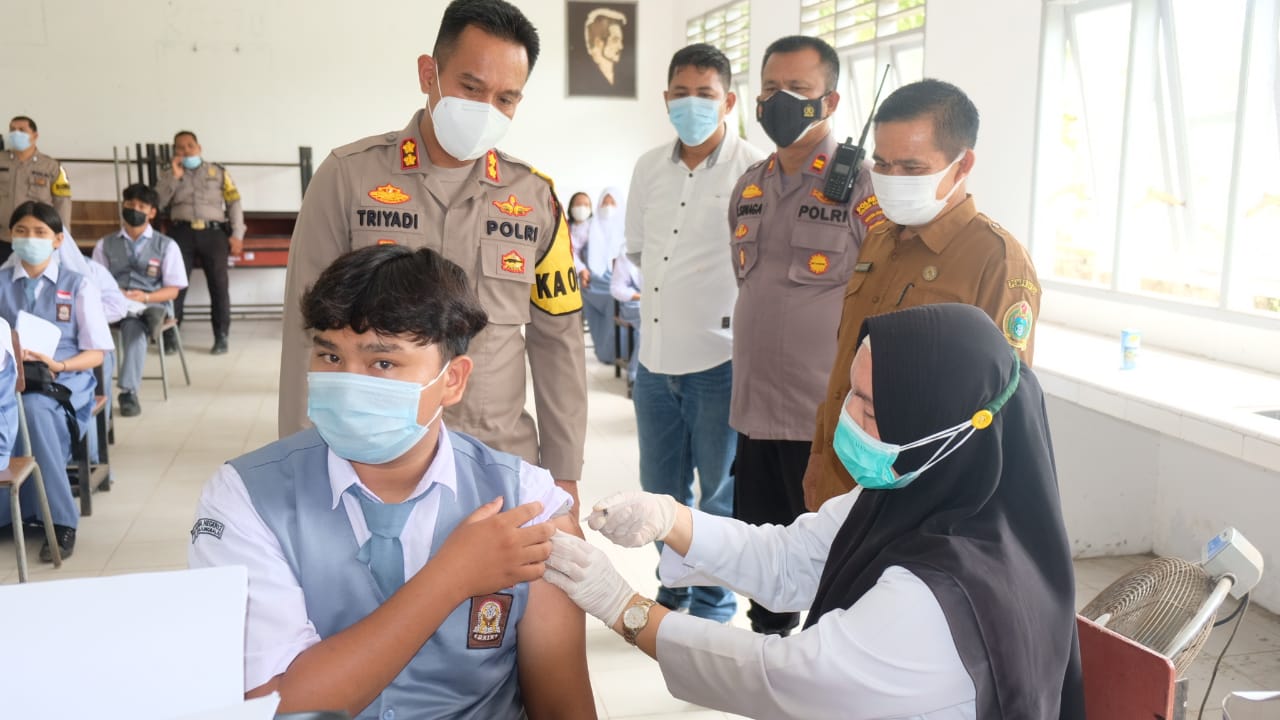 Hal itu diungkapkan Kapolres Tanjungbalai, AKBP Triyadi SH SIK saat meninjau pelaksanaan vaksinasi hari ketiga kepada pelajar tingkat Sekolah Menengah Atas (SMA) se Kota Tanjungbalai , Senin (20/9/2021) sekitar pukul 09.30 WIB.