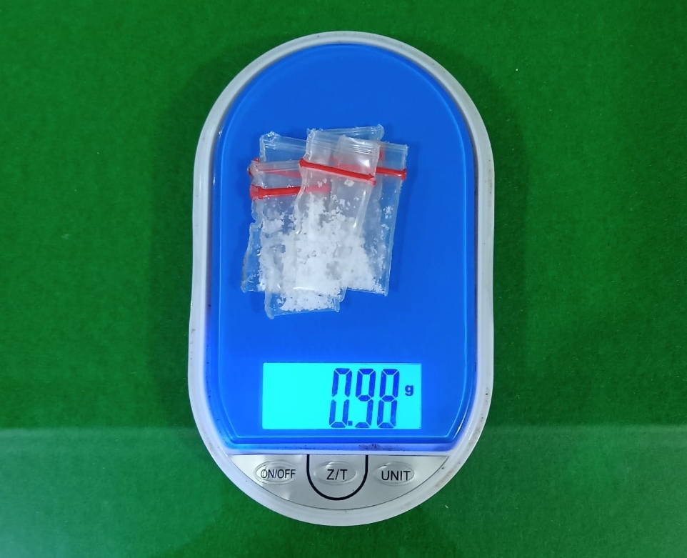 Unit opsnal langsung mengamankan pelaku dan barang bukti Narkotika Jenis Shabu seberat 0,98 gram yang terbungkus dalam 5 klip plastik bening serta satu Unit HP Merk Samsung.