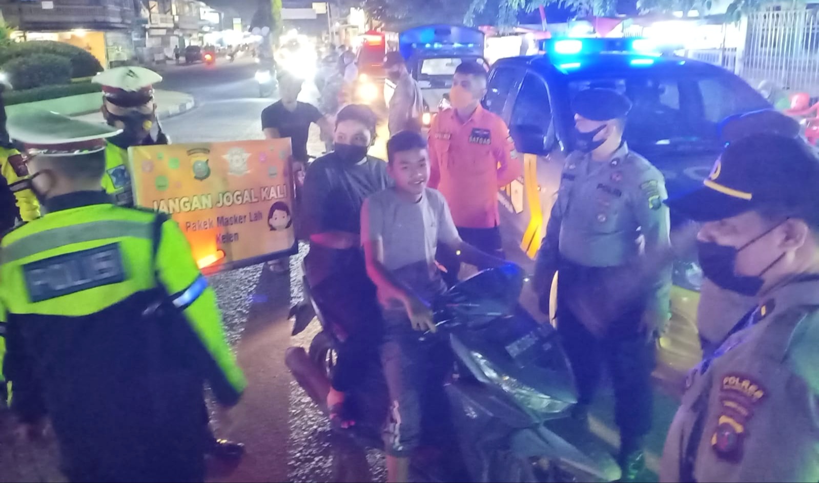 Dilanjutkan ke Cafe AJK RESTO di Jalan Jendral Sudirman Simpang Jalan H Adlin, Hotel Thresya dan Hotel Suranta Permai di Jalan Jendral Sudirman, serta di sekitaran SPBU Batu 7 di Jalan Jendral Sudirman KM.7 dilakukan penyekatan terhadap setiap kendaraan bermotor dan bagi-bagi masker kepada pengendara motor serta mengimbau tentang Prokes.