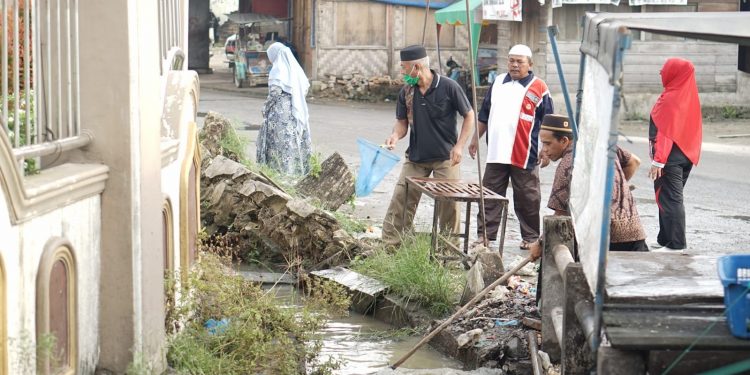 Sekaligus mengajak masyarakat yang berada di lokasi tersebut agar bersama-sama membersihkan saluran air (drainase) dan lingkungan di kawasan Masjid Jami’ itu.