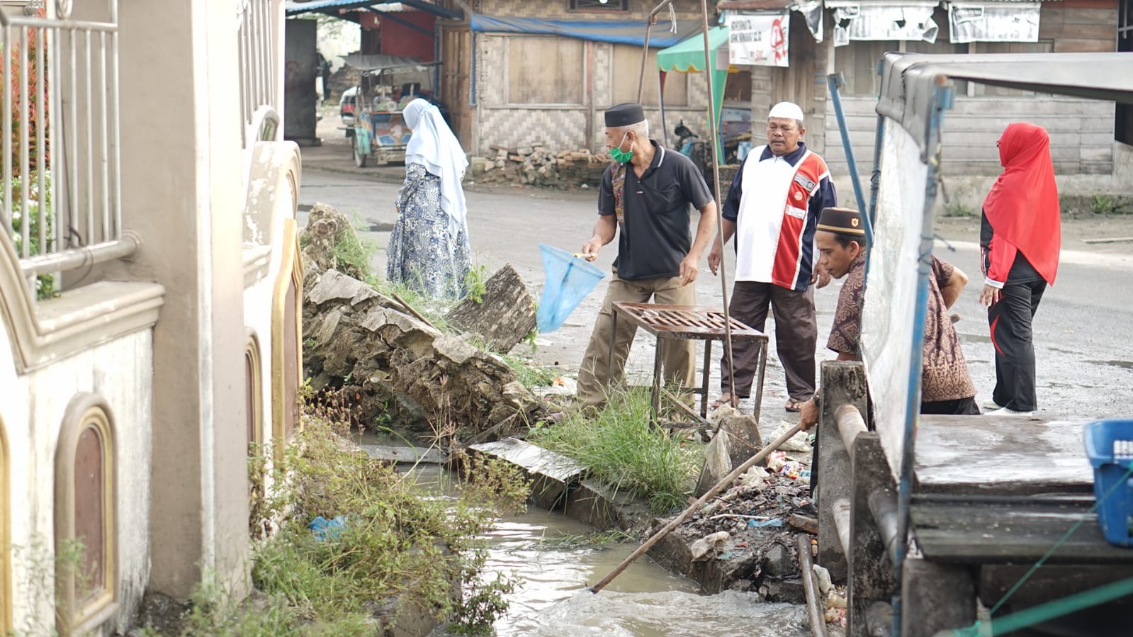 Usai melaksanakan safari Jumat dan bersama OPD Pemkot Tanjungbalai serta masyarakat di Masjid Jami’, Kecamatan Teluk Nibung, Kota Tanjungbalai, Jum’at (10/9/2021) lalu, Plt Wali Kota Tanjungbalai meninjau kondisi saluran drainase dan lingkungan di sekitaran Masjid Jami’.