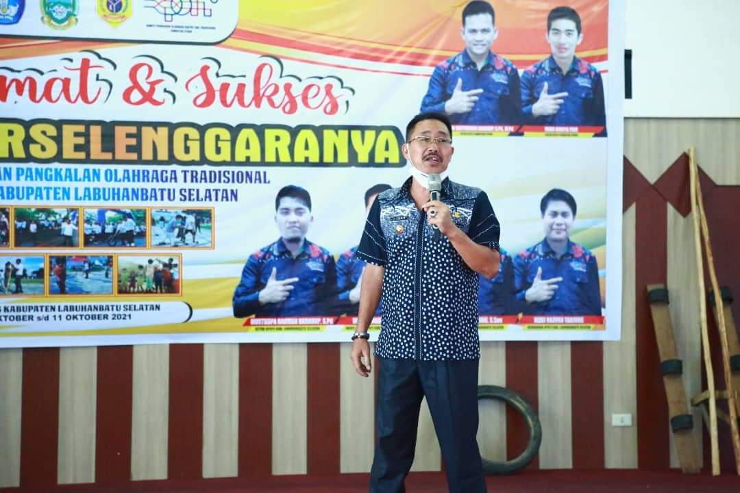 Taslabnews.com, Labusel – Bupati Labuhanbatu Selatan H. Edimin menghadiri sekaligus membuka acara Pelatihan Pembentukan Pangkalan Olahraga Tradisional (PANGKOTRAD) di Kabupaten Labuhanbatu Selatan yang diselenggarakan oleh Komite Permainan Tradisional (KPOTI) Labuhanbatu Selatan.