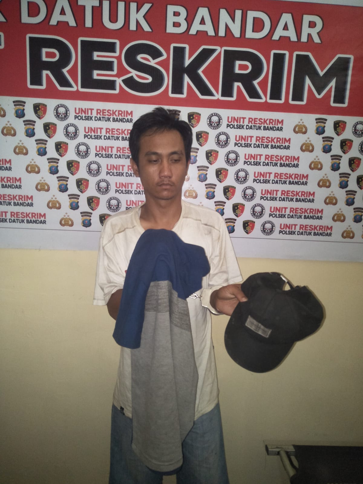 “Berdasarkan adanya laporan polisi dari korban, unit Reskrim Polsek Datuk Bandar, Polres Tanjungbalai langsung melakukan pencarian dan pada hari Minggu (17/10) sekira pukul 02.30 Wib berhasil melakukan penangkapan terhadap tersangka Nedy Hariansyah Hasibuan alias Kucing dari persembunyiannya di dalam sebuah rumah kosong di Jalan Pembangunan, Kelurahan Gading, Kecamatan Datuk Bandar, Kota Tanjungbalai.