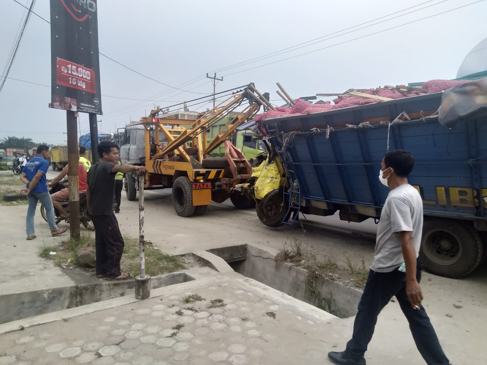 Dikatakan Herman bahwa truknya bermuatan bawang merah dari Brebes, Kabupaten Jawa Barat menuju Kota Pematang Siantar. “Saya sudah biasa bermuatan bawang merah yah sudah nasib kecelakaan,” ujarnya sedih.