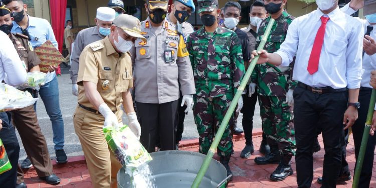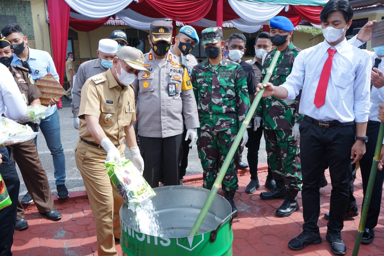 Setelah melaksanakan Apel Gelar Pasukan Kapolres Asahan, Bupati Asahan, Ketua PN Kisaran, Mewakili Dandim 0208/Asahan, Mewakili Danlanal Tanjung Balai Asahan, Mewakili Kajari Asahan, Mewakili Kepala BNN Kabupaten Asahan dan tamu undangan mengikuti kegiatan pemusnahan barang bukti narkotika Sat Res Narkoba Polres Asahan di Halaman Polrea Asahan. (Ril/Syaf)