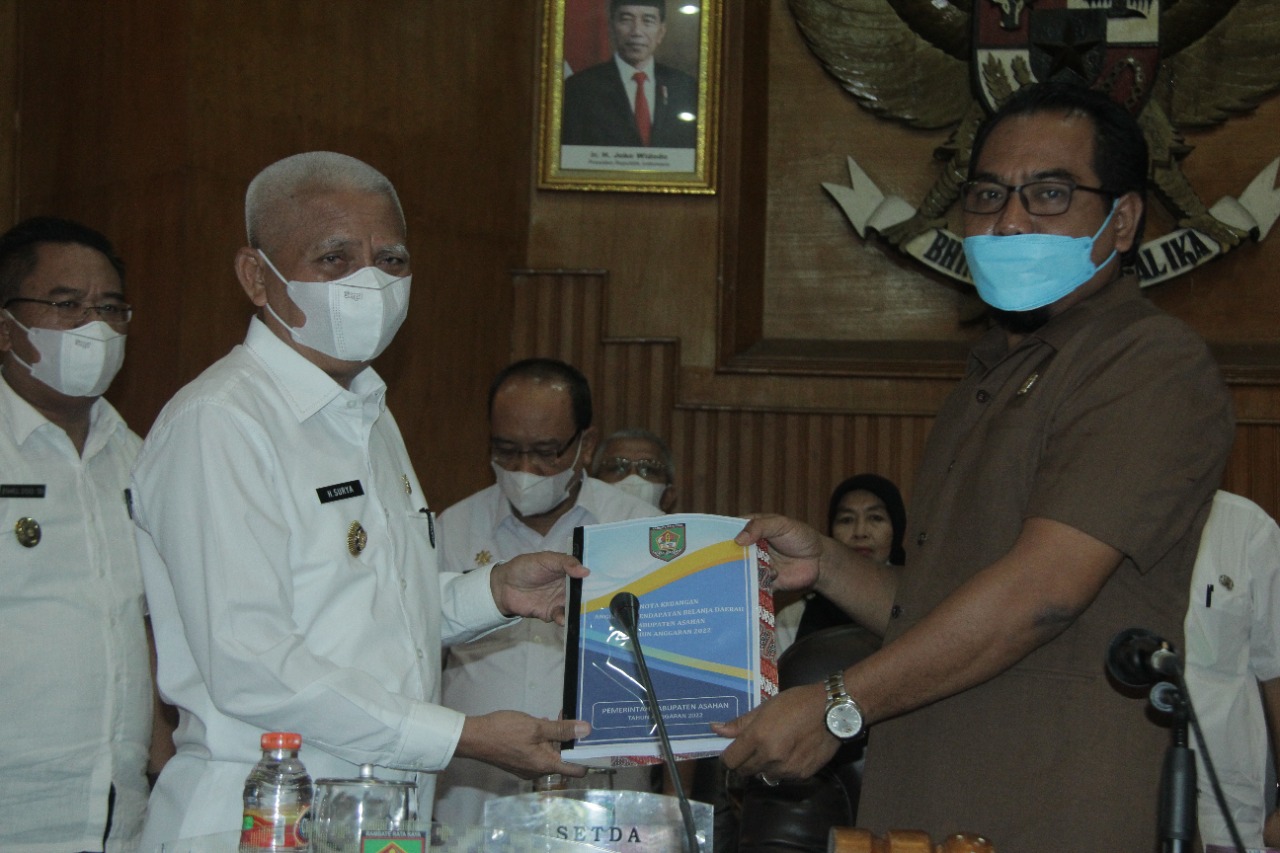 Pada kesempatan ini Bupati Asahan mengatakan penyusunan Rancangan Anggaran Pendapatan dan Belanja Daerah (APBD) Kabupaten Asahan Tahun Anggaran 2022 disusun berdasarkan pada Peraturan Menteri Dalam Negeri Nomor 27 tahun 2021 tentang Pedoman Penyusunan Anggaran Pendapatan dan Belanja Daerah Tahun Anggaran 2022 serta Peraturan Bupati Asahan Nomor 20 Tahun 2021 tentang Rencana Kerja Pemerintah Daerah Kabupaten Asahan Tahun 2022 serta telah diselaraskan terhadap peraturan perundang-undangan lainnya yang terkait dengan sistem perencanaan pembangunan.