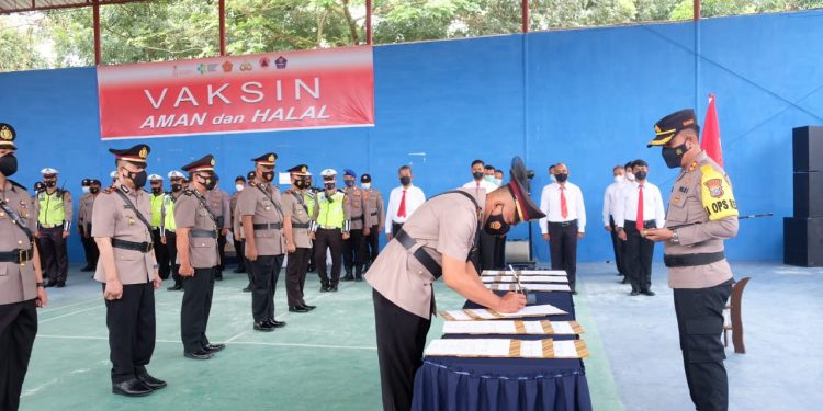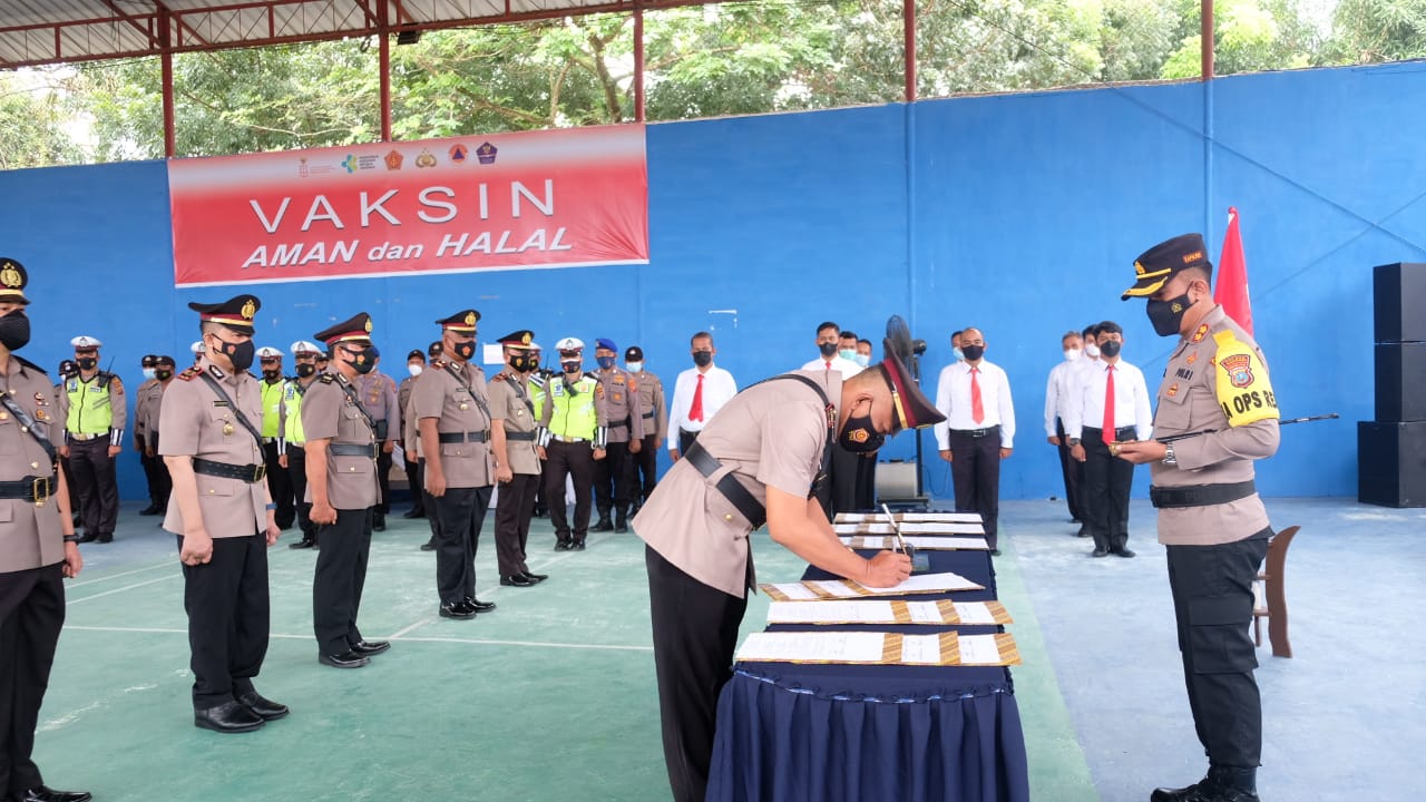 Upacara sertijab dan pelantikan tersebut dihadiri oleh Waka Polres Kompol H Jumanto SH MH, perwira dan personil Polres Tanjungbalai dengan tetap mematuhi protokol kesehatan.