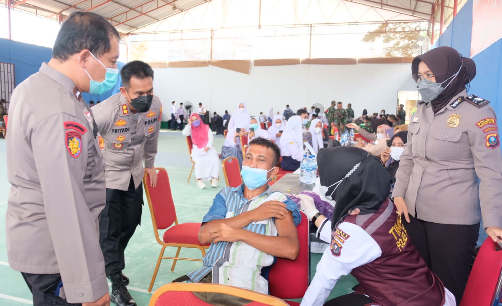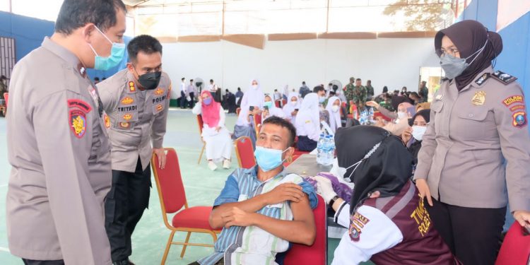 TASLABNEWS, TANJUNGBALAI – Kapolres Tanjungbalai, AKBP Triyadi,SH,SIK bersama dengan Danlanal TBA, Letkol Laut (P) Robinson Hendrik Etwiory,SE bersama-sama meninjau pelaksanaan Vaksinasi TNI-Polri di Gedung Olah Raga (GOR) Serba Guna Wira Satya Polres Tanjungbalai pada hari Rabu (10/11) pada pukul 08.30 Wib.
