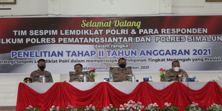 TASLABNEWS, PEMATANGSIANTAR – Kapolres Pematangsiantar, AKBP Boy Sutan Binanga Siregar SIK mengapresiasi kedatangan Tim Sespim Lemdiklat Polri untuk melaksanakan penelitian tahap II Tahun 2021 dalam rangka Strategi Sespim Lemdiklat Polri untuk mempersiapkan Pimpinan Tingkat Menengah yang presisi di era 4.0.