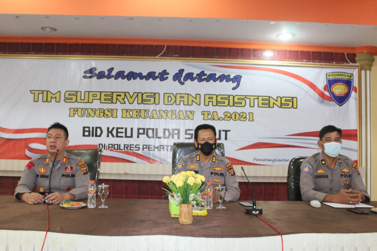 Kapolres Pematangsiantar menyampaikan ucapan selamat datang kepada tim supervisi dan asistensi fungsi Keuangan di Polres Pematangsiantar dalam rangka melaksanakan evaluasi penyerapan anggaran agar menjadi acuan administrasi Keuangan Polres Pematangsiantar.