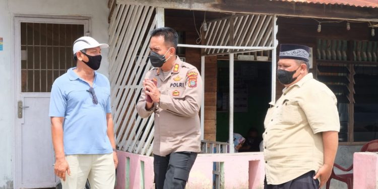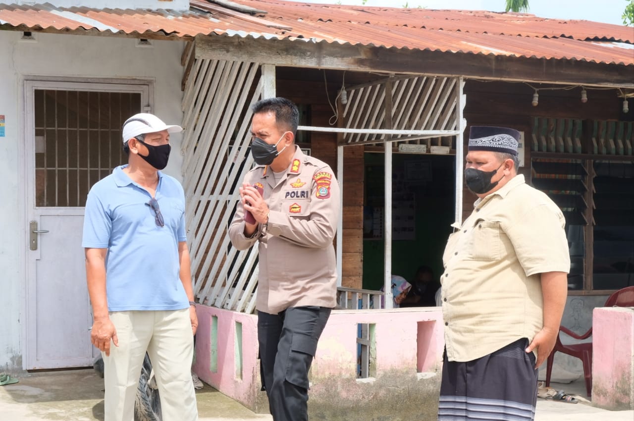 Kapolres Tanjungbalai bersama Lurah Pulau Simardan bersama-sama meninjau pelaksanaan vaksinasi door to door (rumah ke rumah) yang dilaksanakan di rumah Kepala Lingkungan (kepling) VIII, Kelurahan Pulau Simardan, Zulkifli Nasution di Jalan Tenang, Lingkungan VIII, Kelurahan Pulau Simardan, Kecamatan Datuk Bandar Timur, Kota Tanjungbalai.
