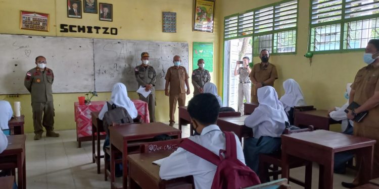 TASLABNEWS, ASAHAN-Kepala Satuan Polisi Pamong Parja Sumatra Utara (Kasatpol PP Sumut) Tuhta Ramah Jaya Saragih Hp Msi, Selasa (23/11/2021) meninjau langsung sekaligus monotoring proses belajar mengajar siswa SMA di Kabupaten Asahan.