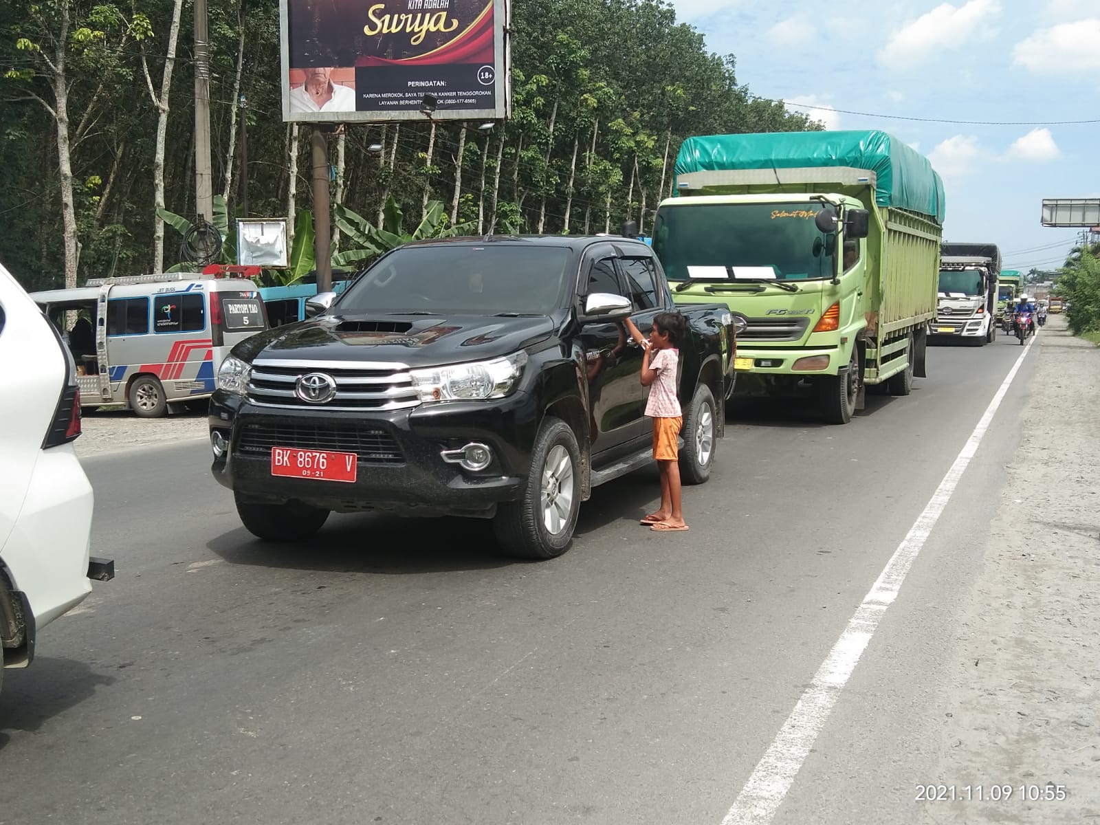 “Pulang anak dari sekolah baru berangkat ngemis. Kalau pas anak nggak sekolah dari pagi ya kuajak berangkat ngemis,” ucapnya. (Edi/Syaf)