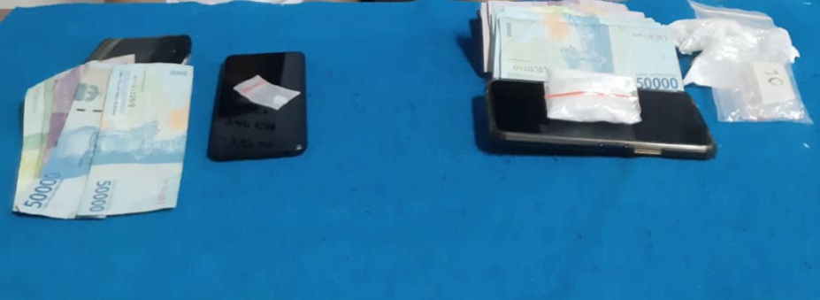 Hasil penggeledahan, ditemukan satu Unit Hp merk Xiaomi di atas tempat tidur dan dari kantong celana yang digantung di dinding kamar, ditemukan satu paket diduga narkotika jenis sabu dengan brutto 0,50 Gram serta satu dompet berisi uang sebesar Rp150.000.