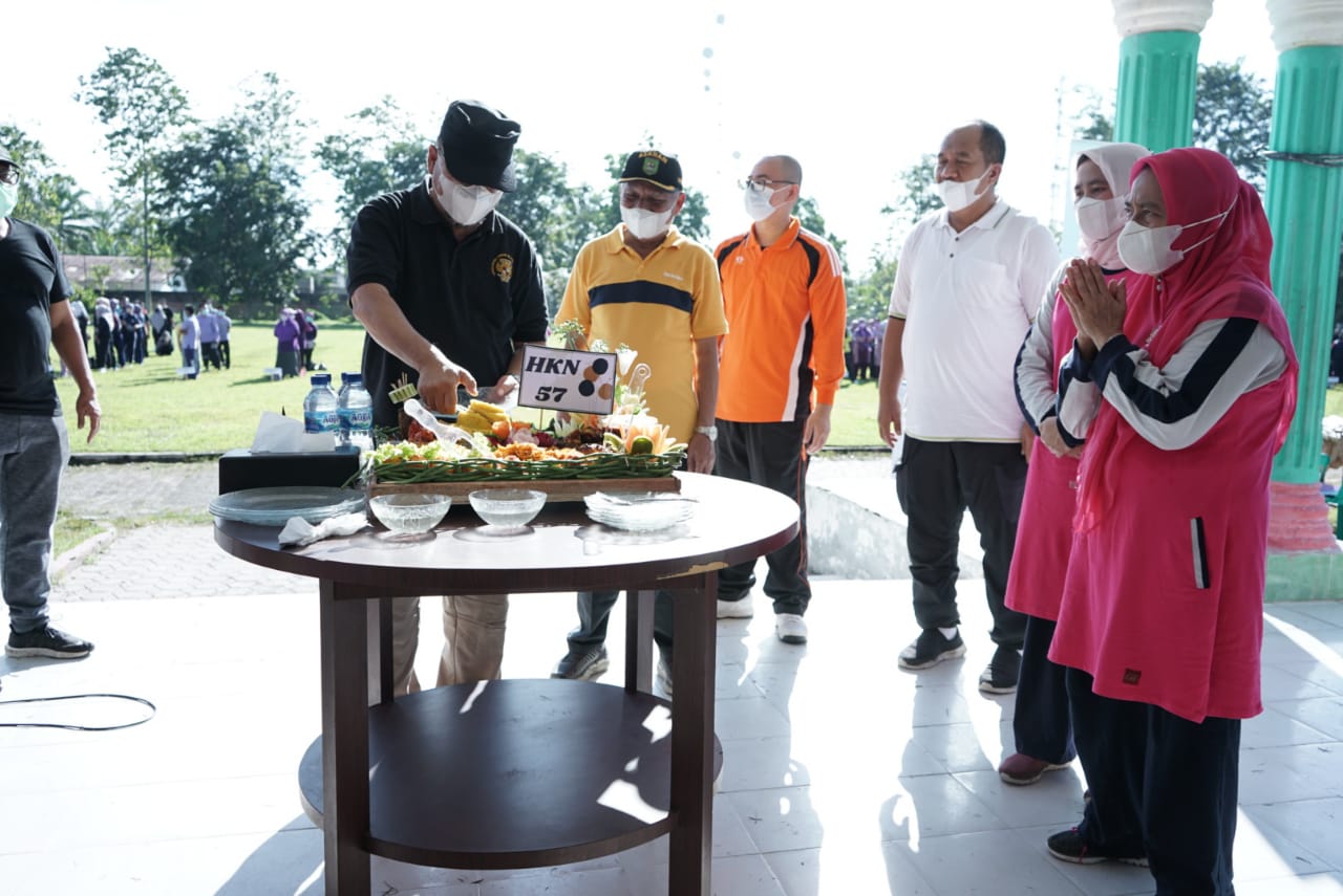 Lebih lanjut Bupati juga menyampaikan melalui Peringatan HKN ke 57 tahun ini dapat dijadikan Momentum untuk bersyukur karena Indonesia menjadi salah satu Negara yang berhasil menurunkan lonjakan kasus Covid 19 yang disebabkan adanya Mutasi Virus.