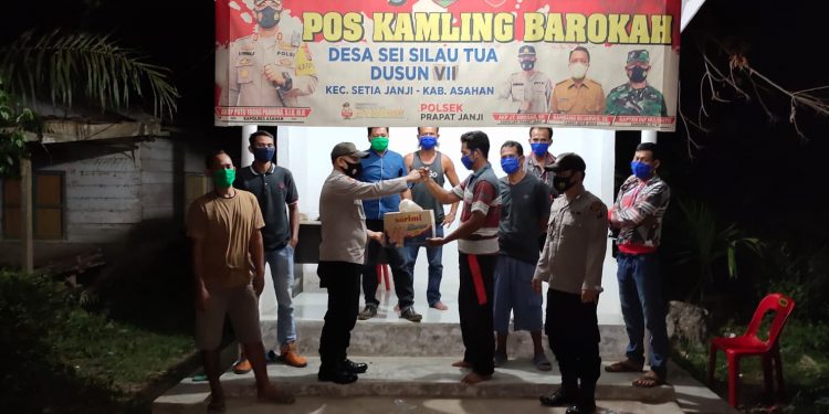 TASLABNEWS, ASAHAN -Polres Asahan dan jajaran melaksanakan patroli dan sambang ke Pos Keamanan Lingkungan (Poskamling) Barokah Polres Asahan, Jumat (05/11/2021). Selain memberi arahan, juga dilakukan pemberian berupa; Teh Celup, Kopi, gula, nasi bungkus dan Indomie kepada petugas Poskamling.
