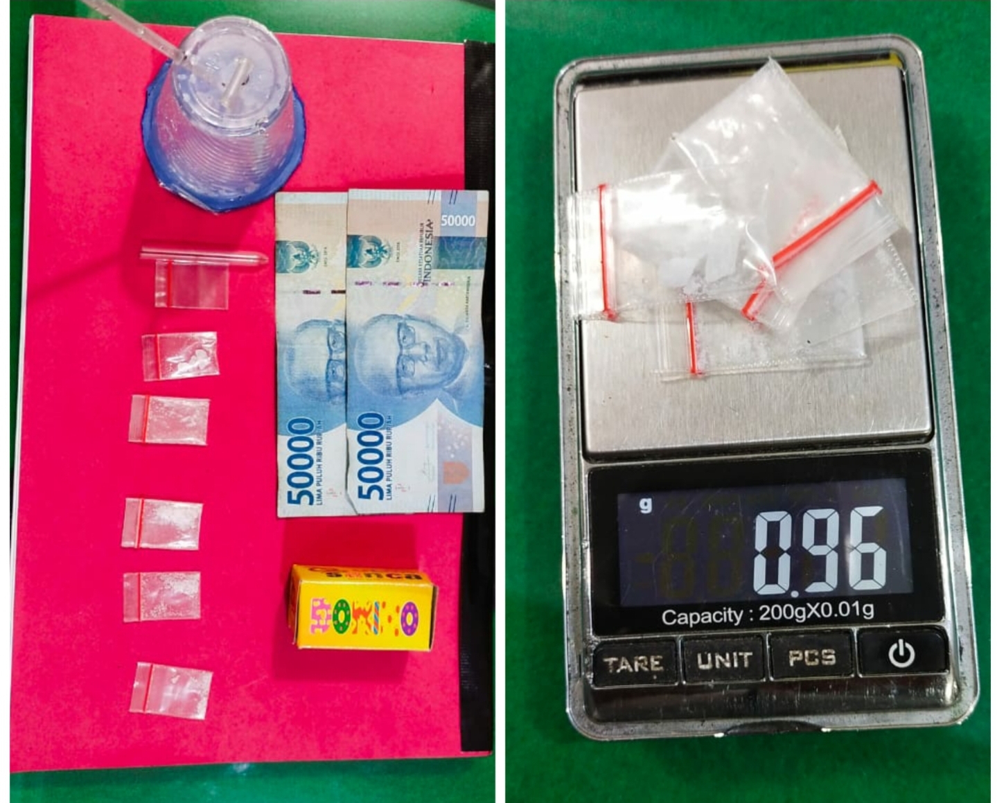Lebih lanjut diterangkan AKP Nasri Ginting, dari tangan tersangka, petugas menyita ima paket plastik klip kecil berisikan butiran kristal diduga sabu dengan berat 0,96 Gram.