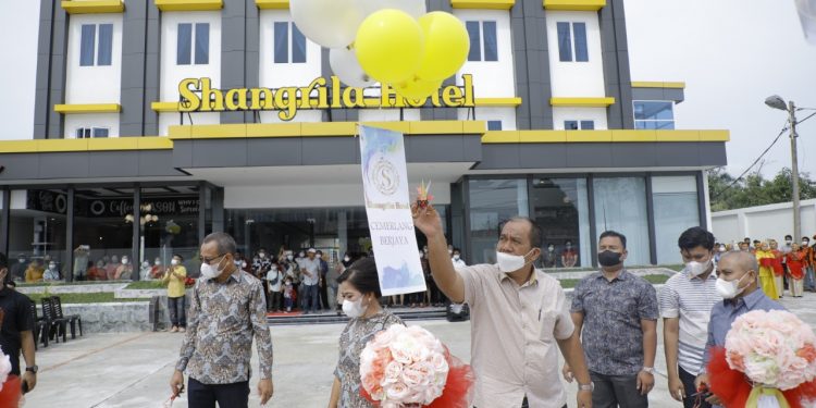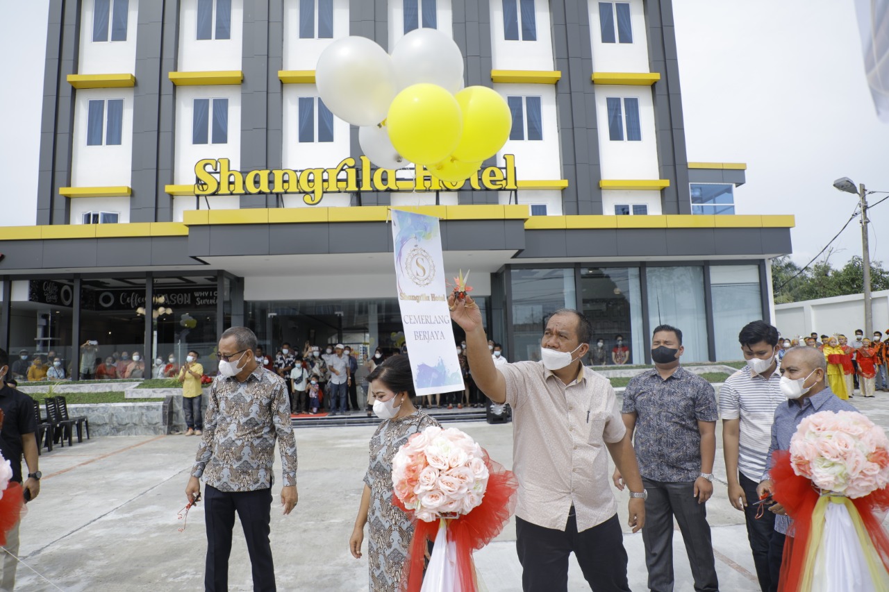 Dalam acara ini, pemotongan pita dan pelepasan balon di Halaman Shangrila Hotel Desa Ledong Barat Kecamatan Aek Ledong yang dilakukan oleh Direksi Shangrila Hotel bersama dengan Wakil Bupati (Wabup) Asahan, Wabup Labuhan Batu Utara (Labura) dan tamu undangan mengawali grand opening Shangrila Hotel, Minggu (14/11/2021).