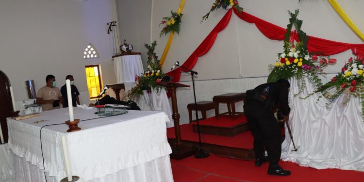 “Gereja prioritas yang dilakukan sterilisasi ada enam, antara lain GKPS Jalan Sudirman, Gereja HKBP Jalan Gereja, GPIB Maranatha Jalan Simbolon, Gereja HKI Jalan Melanthon Siregar, Gereja Khatolik St Laurensius Jalan Sibolga dan Gereja HKBP Siantar Kota Jalan Sangnawaluh, Kecamatan Siantar Timur,” ujar AKP Rusdi.