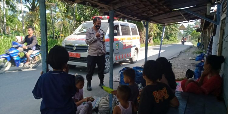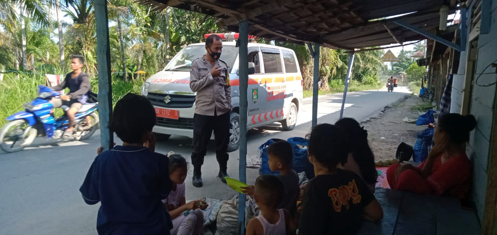 Dimana personil Bhabinkamtibmas bersama perangkat desa mendatangi Balai Desa Pematang Sei Aru, Kecamatan Tanjungbalai, Kabupaten Asahan guna memberikan imbauan kepada masyarakat dalam percepatan vaksinasi.