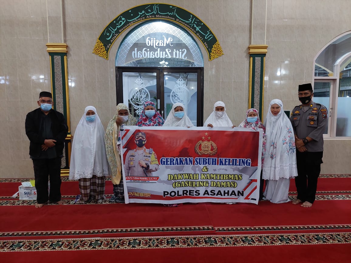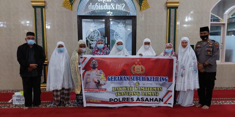 TASLABNEWS, ASAHAN-Personel Polres Asahan mendatangi 7 masjid untuk melaksanakan kegiatan Gerakan Sholat Subuh Keliling dan Dakwah Kamtibmas (Gasuling Damas) di wilayah hukum Polres Asahan, Selasa (15/12/2021), pukul 05.00 Wib.
