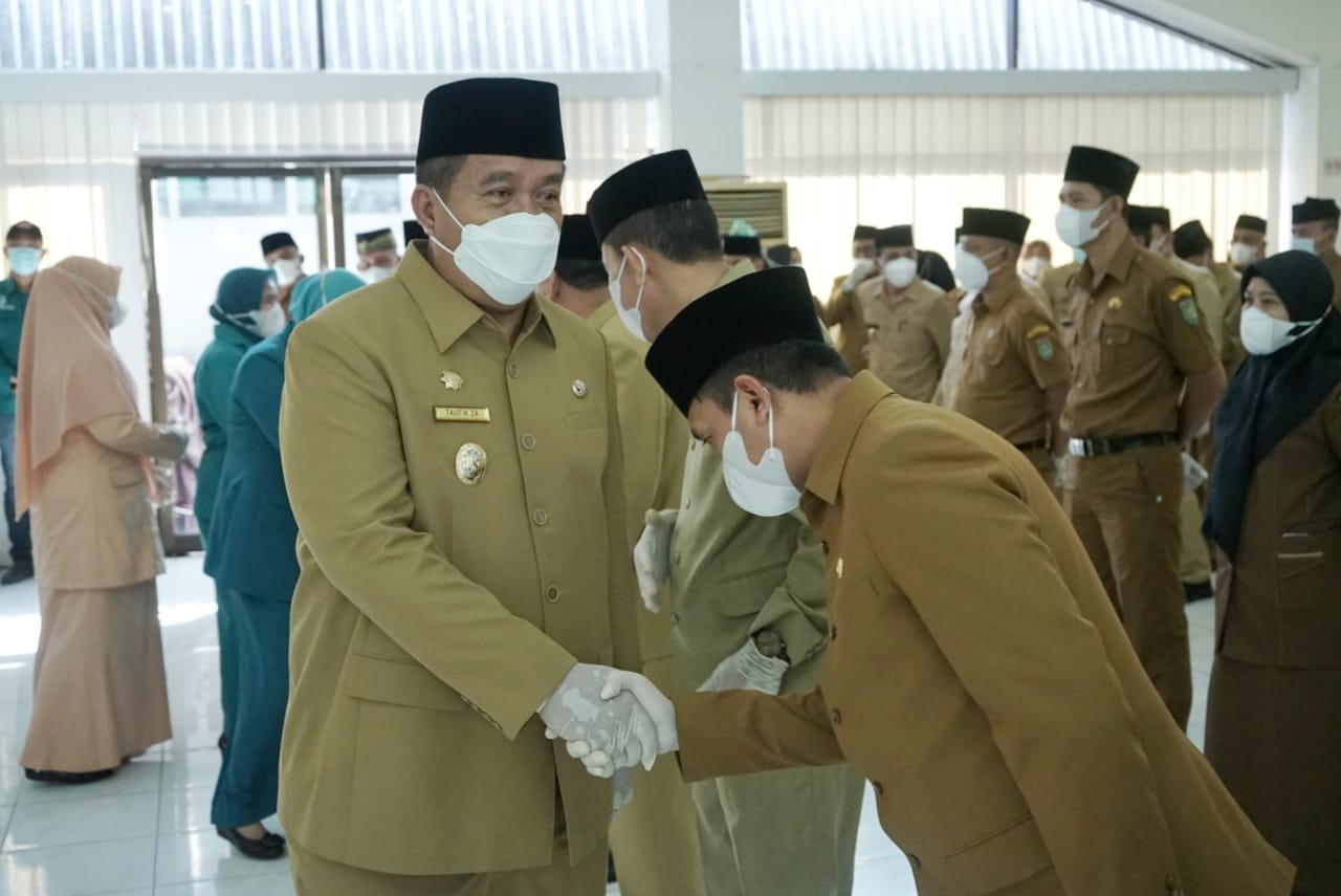 “Selaku Pejabat pembina Kepegawaian, saya mempunyai kewenangan untuk menetapkan pengangkatan, pemindahan, dan pemberhentian seorang pegawai negeri sipil dalam suatu jabatan, dan melakukan pembinaan manajemen aparatur sipil negara di Instansi pemerintah sesuai dengan ketentuan peraturan perundang-undangan yang berlaku. Meskipun demikian saya tetap melakukan pertimbangan yang berdasarkan pada obyektivitas, Kepangkatan, kompetensi, kinerja dan pengalaman tanpa membedakan gender, suku, agama, ras dan golongan, yang tentunya sejalan dengan rekomendasi Tim Penilai kerja kepegawaian,” tegas Taufik mewakili Bupati.