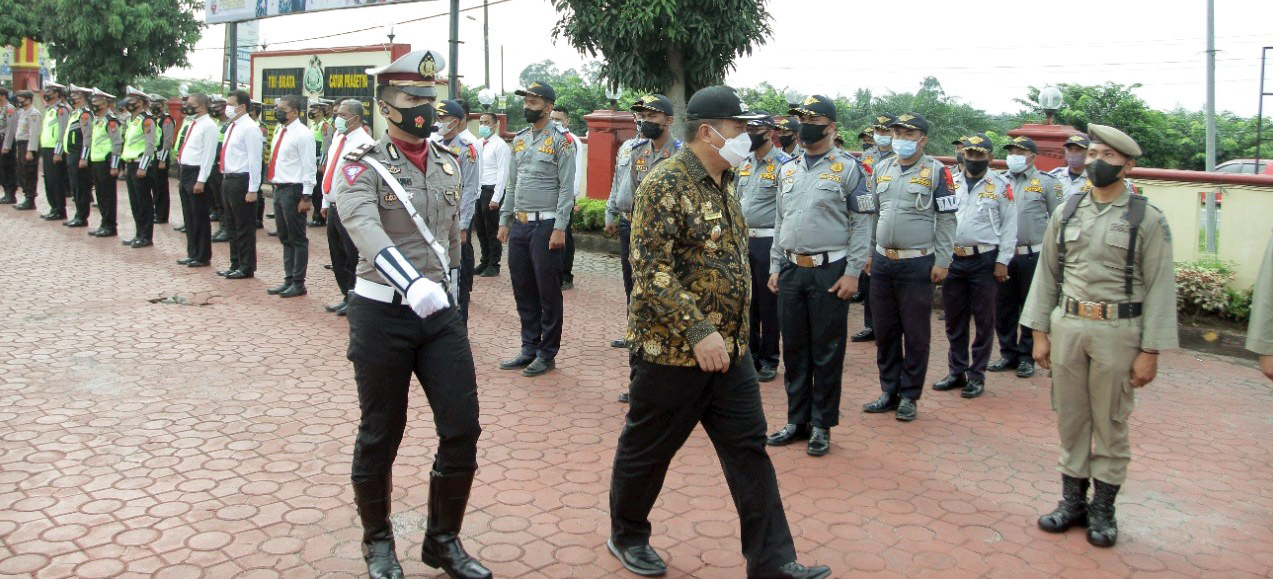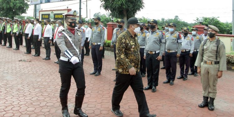 TASLABNEWS, ASAHAN – Jelang hari Natal dan Tahun Baru, Wakil Bupati Asahan, Taufik Zainal Abidin Siregar SSos MSi memimpin Apel Gelar Pasukan Operasi Kepolisian Terpusat Lilin Toba 2021 Polres Asahan di Halaman Markas Komando Polres Asahan, Kamis (23/12/2021).