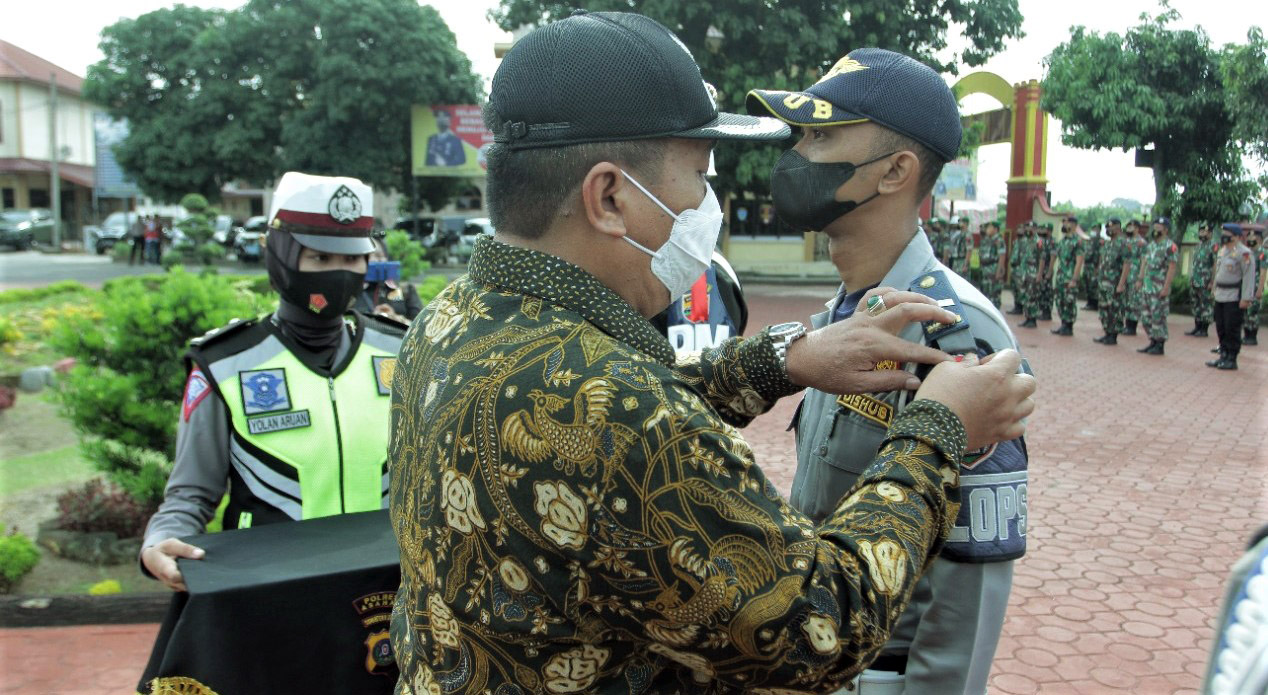 Pada apel tersebut, Wakil Bupati Asahan menyematkan pita tanda Operasi Kepolisian Terpusat Lilin Toba 2021 kepada perwakilan pasukan.