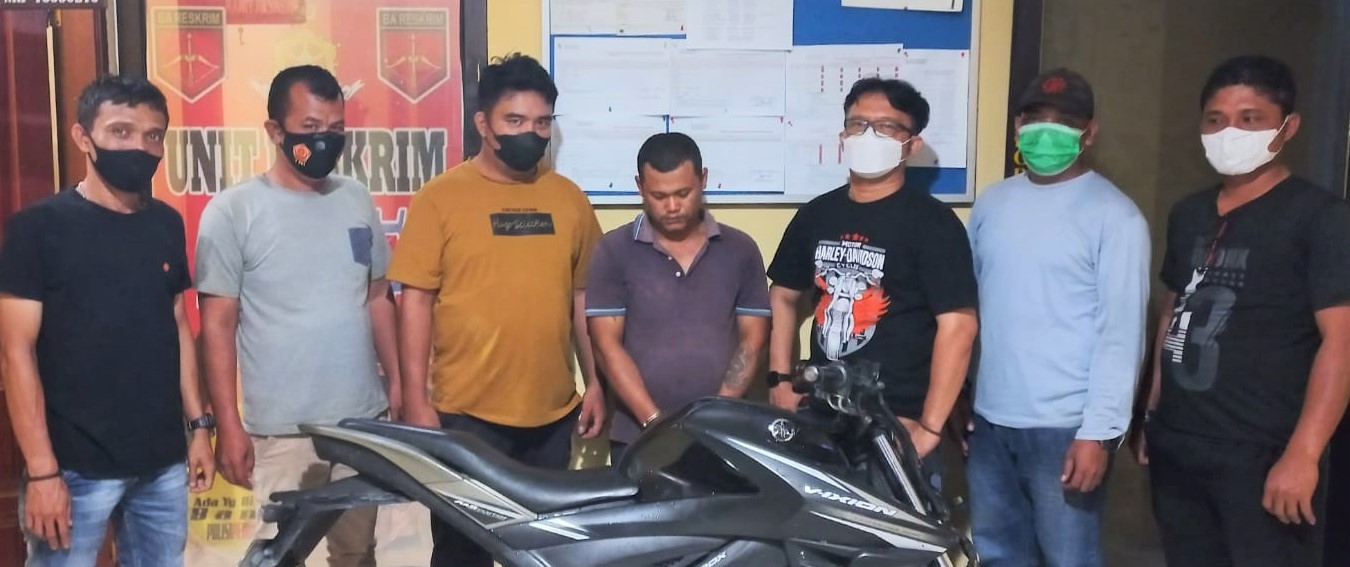 Diperoleh informasi, pelaku pencurian sepedamotor Yamaha Vixion warna Hitam Nopol BK 3370 TBJ bernama Parlindungan Tampubolon yang bertempat tinggal di Tanjung Pinggir dekat UPAS dan sepedamotor hasil curian Pelaku disimpan di dalam rumahnya.