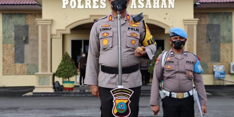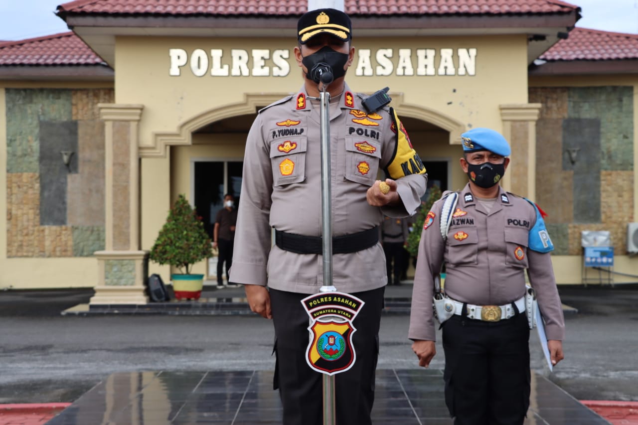 Kapolres Asahan AKBP Putu Yudha Prawira SIK MH pimpin pelaksanaan upacara Korp Raport Kenaikan Pangkat Personil Polres Asahan periode 1 Januari 2022, Sabtu (1/01/2022).