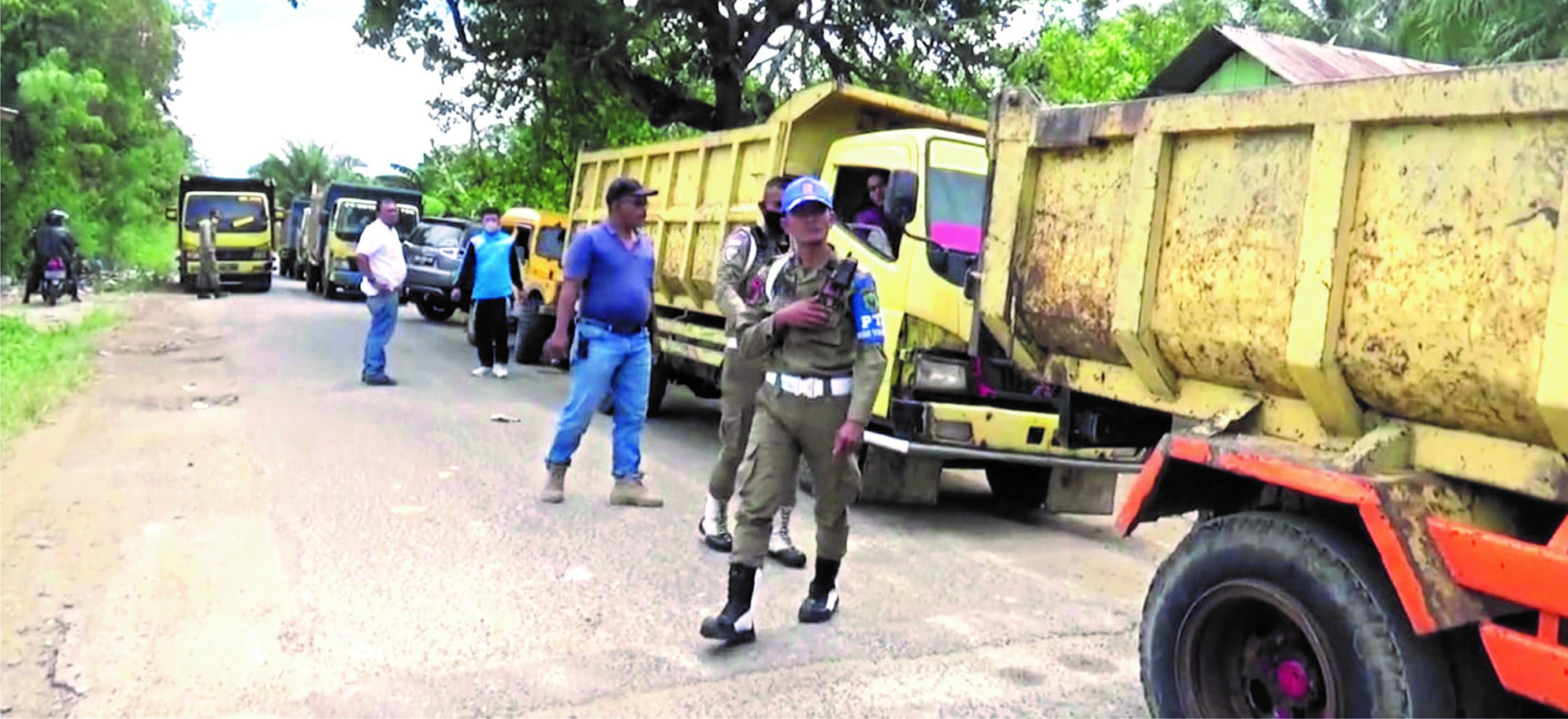 Belasan truk yang diketahui membawa hasil Galian C, yang datang dari arah Pasar Matanggor diberhentikan petugas Satpol PP. Kemudian para supir diminta menunjukkan surat jalan dan tanda bukti bayar/setor pajak dari pemilik Galian C.