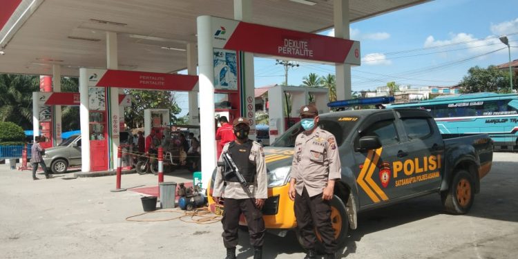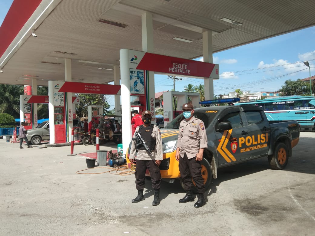 TASLABNEWS, ASAHAN- Personel Polsek Air Joman Polres Asahan melaksanakan patroli rutin, Senin (07/2/2022) pukul 10.30 wib menyambangi SPBU Simpang Butong, Bank BRI, BANK Sumut, Jalan Protokol Air Joman.