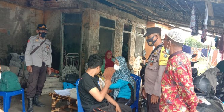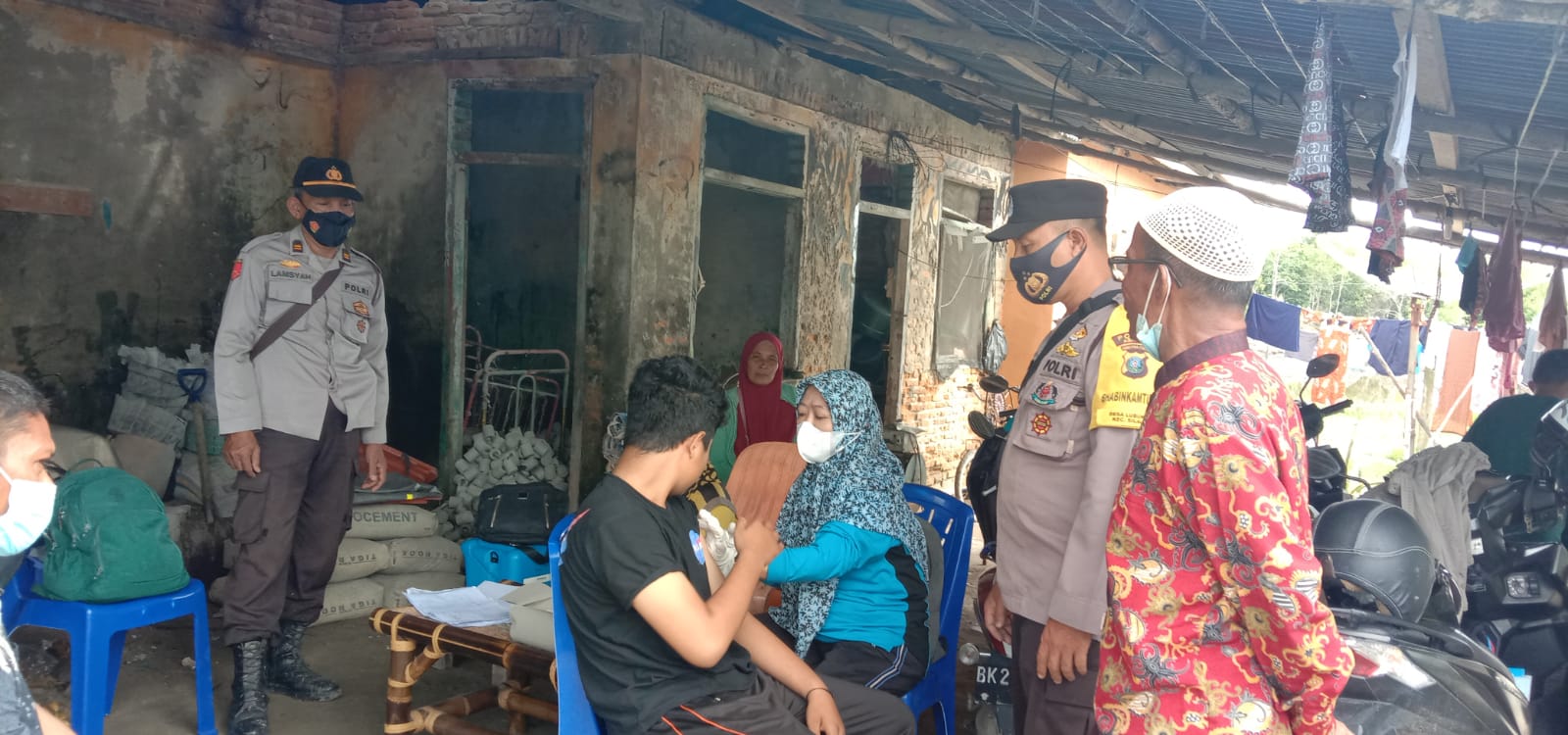 TASLABNEWS, ASAHAN-Kapolsek Air Joman pimpin pelaksanakan vaksinasi Covid 19 untuk di rumah warga bernama Pahrijal Marpaung, di Dusun 10, Silo Baru, Kecamatan Silau Laut, Jumat (11/2/2022).