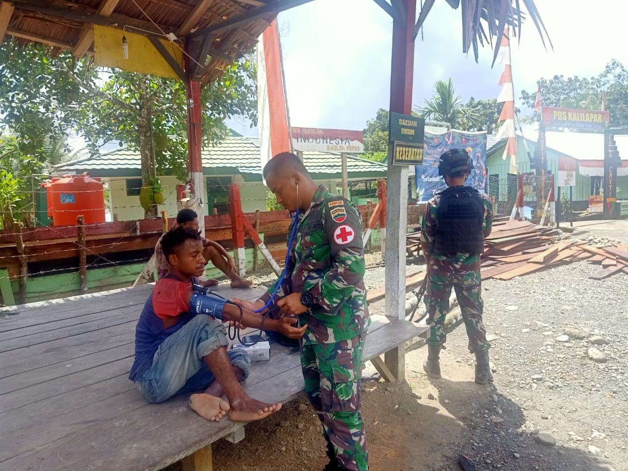 TASLABNEWS- Satgas Yonif 126/KC Asahan, Pos Kalilapar menggelar pengobatan gratis untuk masyarakat Kampung Sach, Distrik Waris, Kabupaten Keerom.