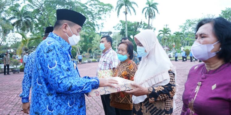 Dikesempatan itu juga, Wakil Bupati Asahan menyerahkan penali kasih kepada PNS yang akan memasuki masa pensiun tahun 2021-2022, disaksikan Sekretaris Daerah Kabupaten Asahan, Staf Ahli Bupati Asahan, Asisten, OPD dan ASN di Lingkungan Pemerintah Kabupaten Asahan yang mengikuti Upacara HKN. (mom)