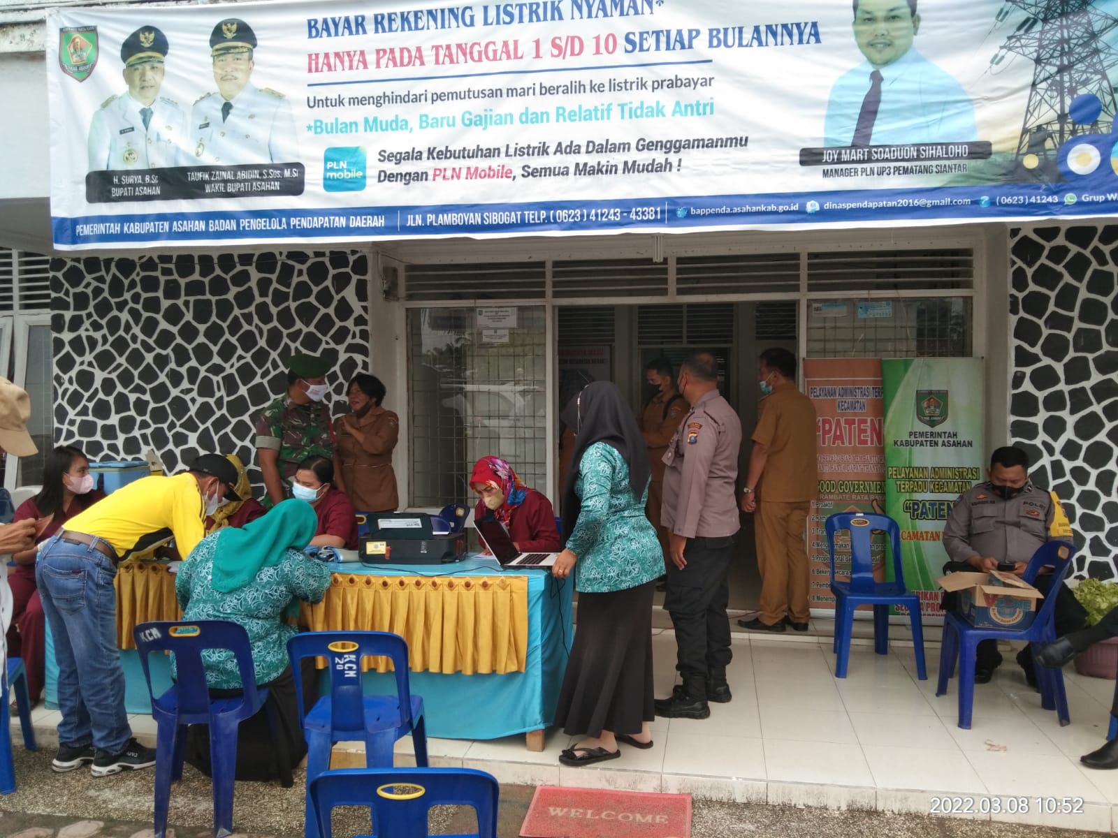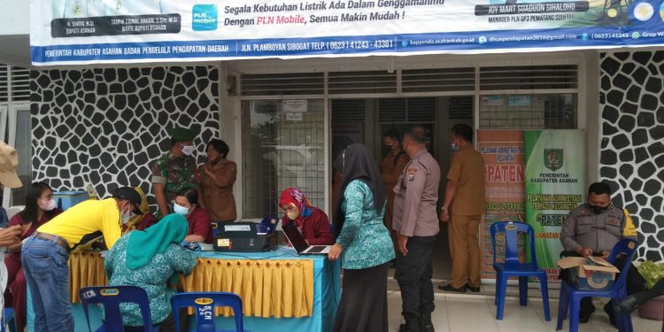 TASLABNEWS, ASAHAN-Pihak Kecamatan Meranti, Kabupaten Asahan, Sumatera Utara Selasa (8/03/2022) menggelar vaksinasi mulai pukul 09.00 wib di halaman kantor Camat Meranti Sekaligus gelar lomba membuat nasi tumpeng.
