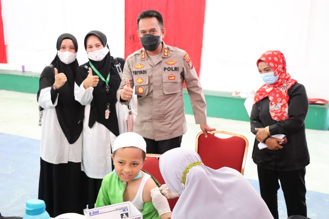 TASLABNEWS, TANJUNGBALAI – Kapolres Tanjungbalai, AKBP Triyadi,SH,SIK didampingi Wakil Kapolres, Kompol H Jumanto,SH,MH pantau langsung pelaksanaan Gebyar Vaksinasi Presisi Anak usia 6 – 11 tahun dan Lanjut Usia (Lansia) Dosis 1, 2 dan 3 (Booster), Rabu (23/3) pukul 10.00 WIb di Gedung Olah Raga (GOR) Wira Satya Polres Tanjungbalai.