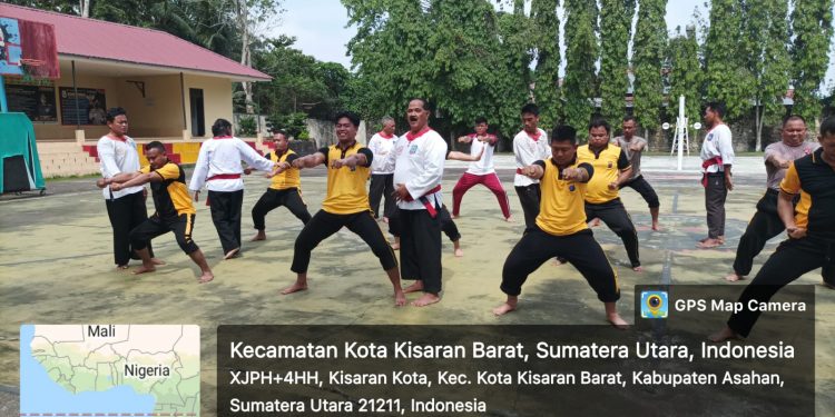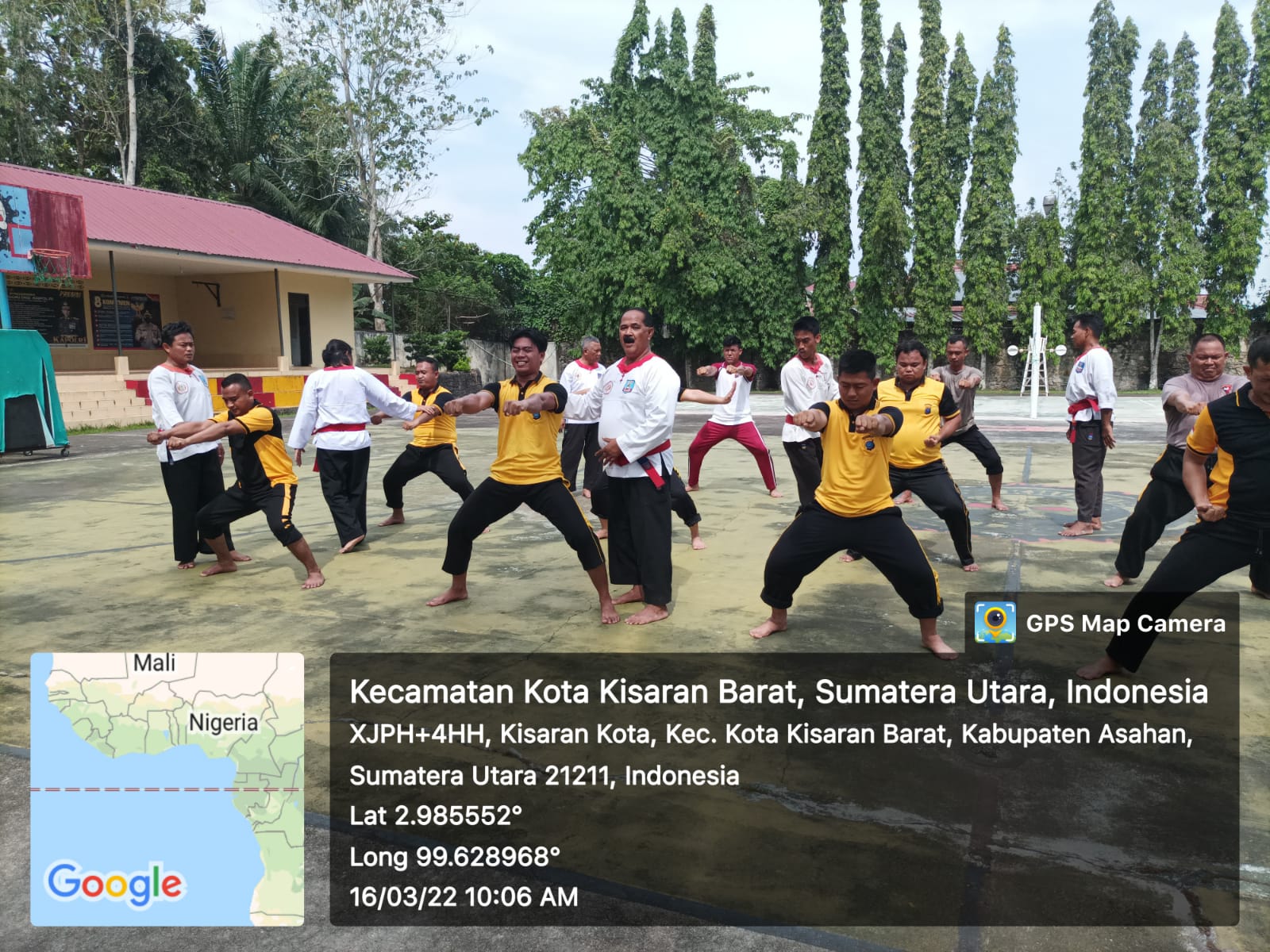 TASLABNEWS, ASAHAN-Personel Polres Asahan melaksanakan latihan beladiri Pencak Silat Merpati Putih di Lapangan Tembak Polres Asahan, Rabu (16/3/2022).