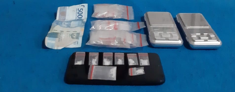 Hasil penggeledahan yang dilakukan terhadap Roni, ditemukan uang tunai sebesar Rp100.000, lalu dilakukan penggeledahan rumah dan ditemukan dua unit timbangan digital, satu kantong plastik klip berisi tujuh paket narkotika jenis sabu, tiga bungkus plastik klip kosong, dan satu Unit Hp merk Redmi.