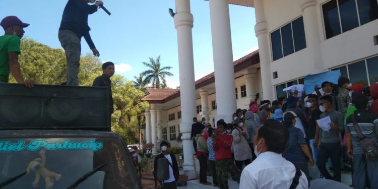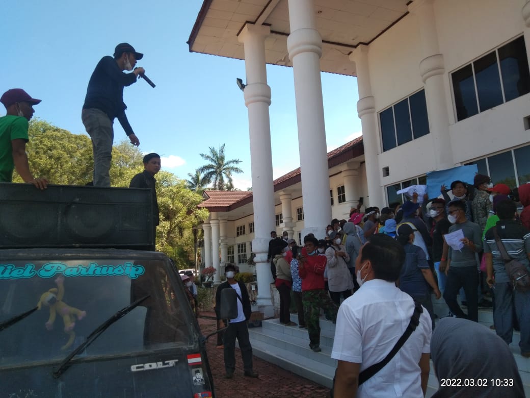 Pantauan wartawan, karena bupati dan wakil bupati tidak di tempat, maka pengunjuk rasa di terima oleh asisten dua, kadis PUPR dan kadis perhubungan.