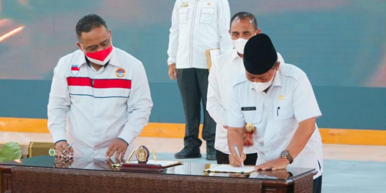 TASLABNEWS, TANJUNGBALAI – Plt Wali Kota Tanjungbalai, H Waris Thalib,S.Ag,MM bersama dengan Bupati dan Wali Kota se Provinsi Sumatera tandatangani Nota Kesepakatan dengan Badan Perlindungan Pekerja Migran Indobesia (BP2MI).