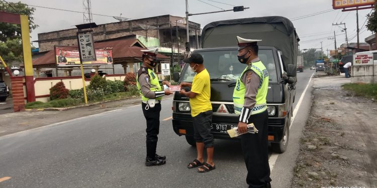 Dari pantauan awak media, tampak kendaraan yang pengemudinya tidak pakai masker di berhentikan, selain diimbau agar mematuhi prokes. (Edi/Syaf)